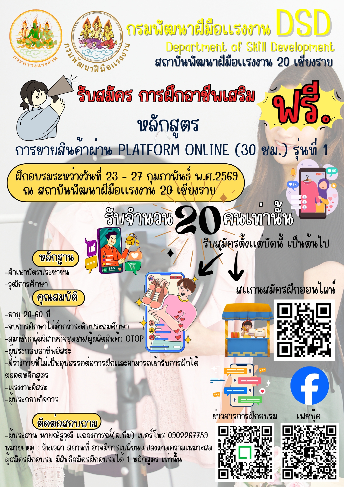หลักสูตร การขายสินค้าผ่าน PLATFORM ONLINE (30 ชม.) รุ่นที่ 1/2569 ฟรี